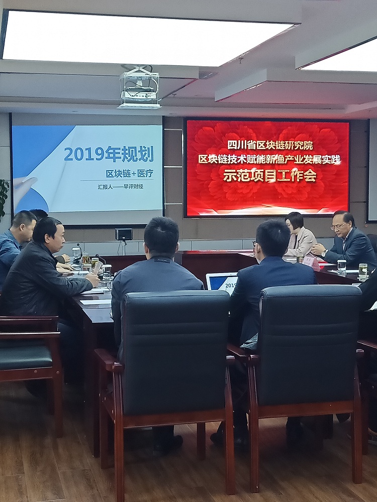 2018年11月7日 四川省區(qū)塊鏈研究院區(qū)塊鏈技術(shù)賦能新漁產(chǎn)業(yè)發(fā)展實踐示范項目工作會在新漁生物總部召開。