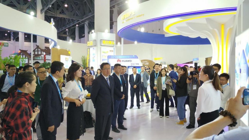 眉山市市委書記慕新海視察展位,與參展企業(yè)代表溝通。新漁生物,西博城6號館,眉山市展區(qū)與您相約!